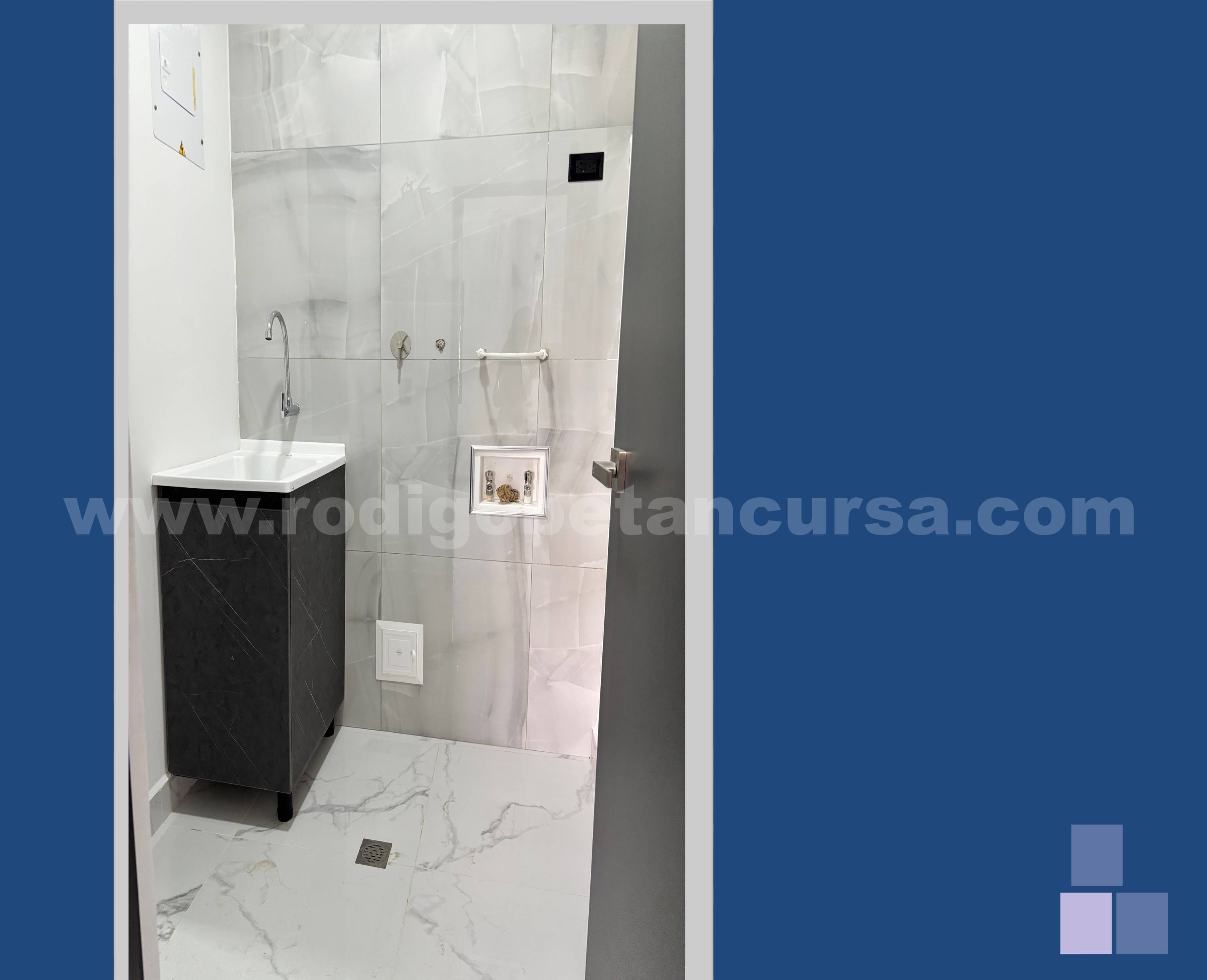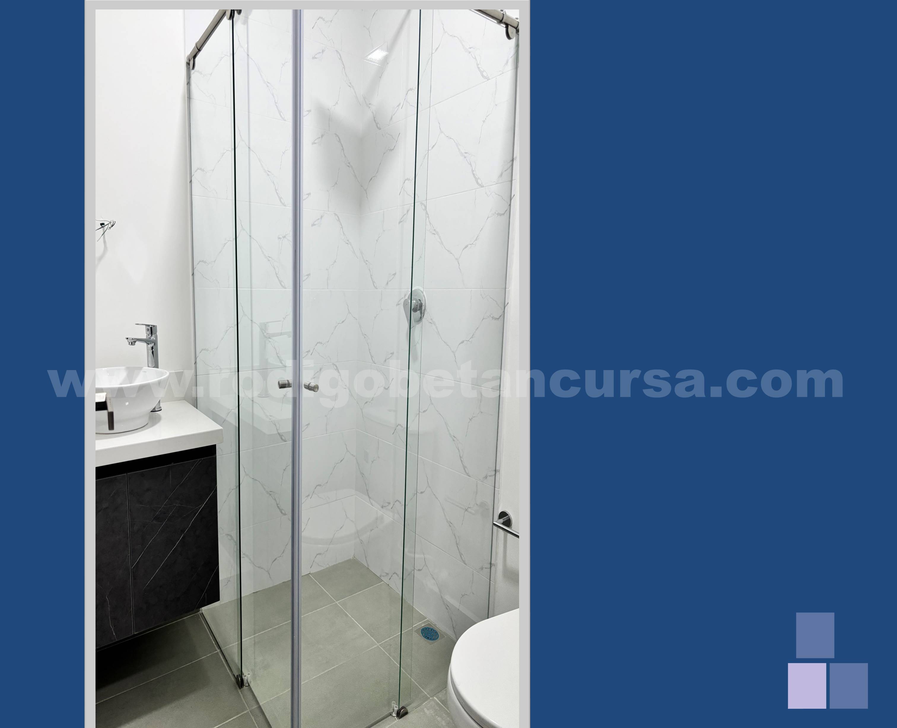 Baño cabinado con acabados modernos.