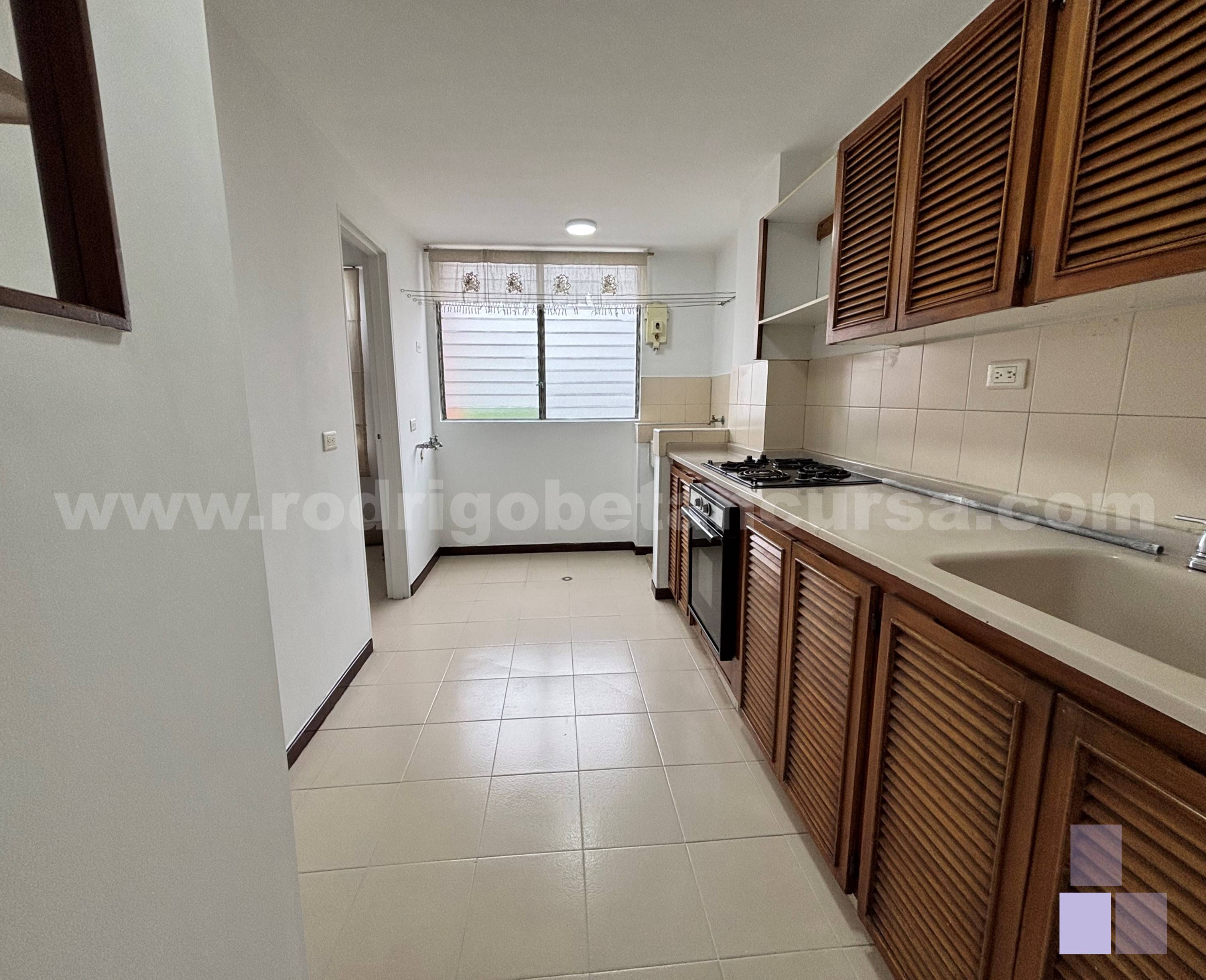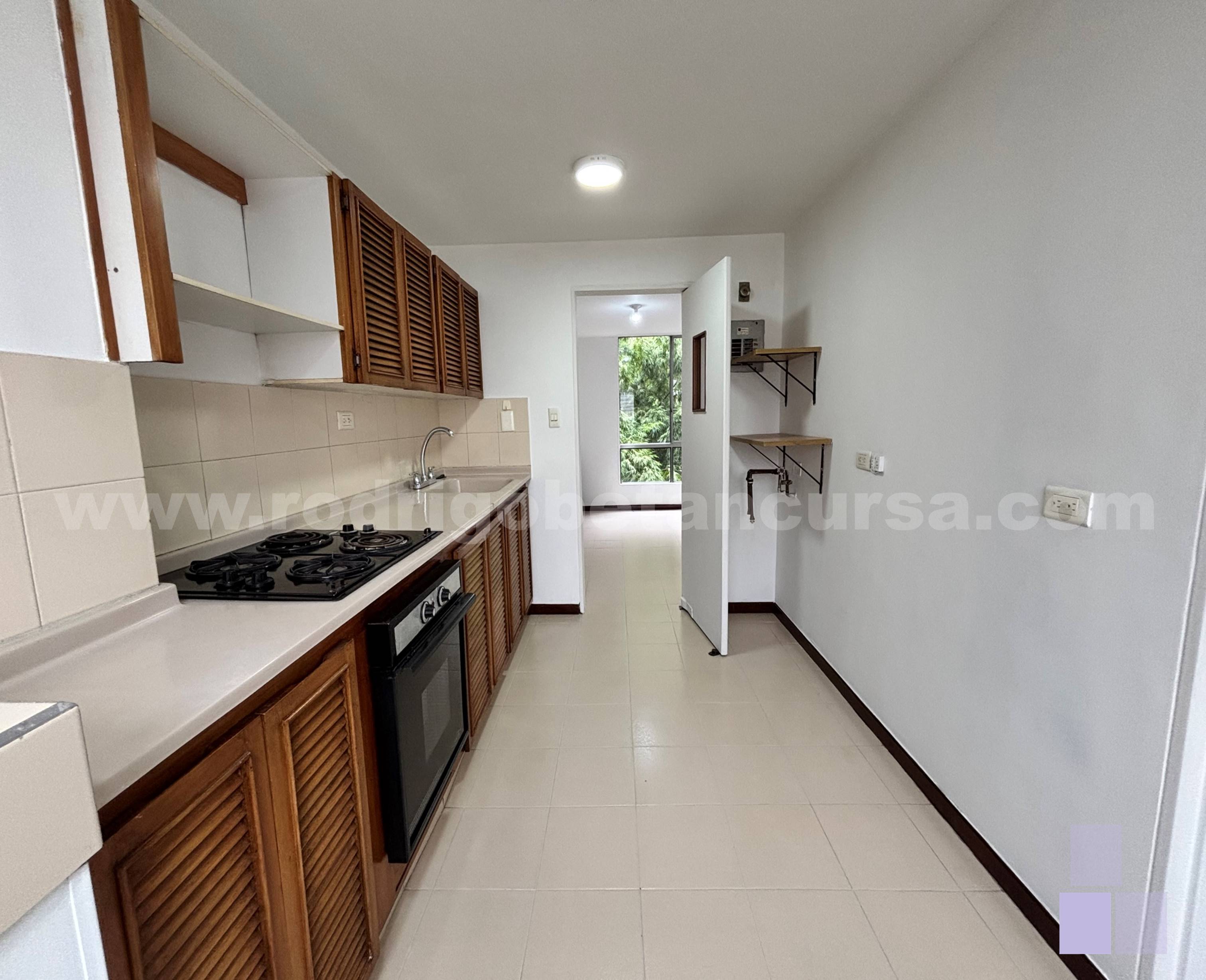 Cocina integral, equipada con múltiples espacios de almacenamiento.